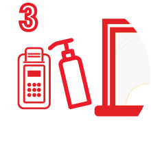 Installation gel hydro-alcoolique et pinpad à l'extérieur au niveau du guichet prise de commande